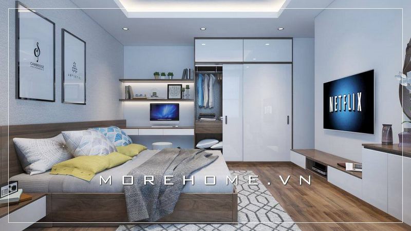 Bố trí nội thất phòng ngủ chung cư nhỏ đầy gọn gàng, ngăn nắp hơn với tủ quần áo cửa lùa tiện dụng