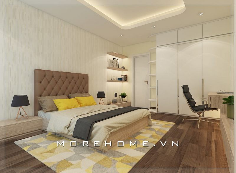 Tủ áo hiện đại được thiết kế dạng cửa trượt âm tường giúp cho không gian phòng ngủ thêm rộng rãi và thoáng mát.