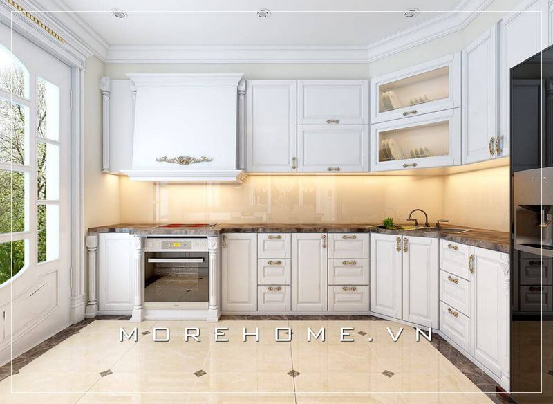 Thiết kế nội thất phòng bếp chung cư phong cách tân cổ điển sang trọng và đẳng cấp