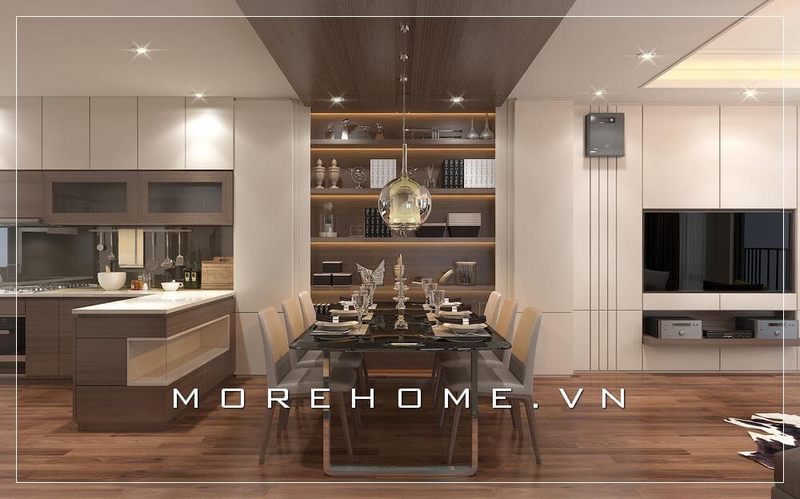Thiết kế nội thất phòng bếp chung cư phong cách hiện đại, đơn giản và tiện nghi