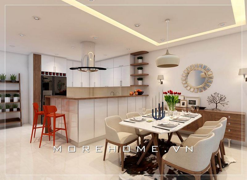 Nội thất phòng ăn chung cư liền kề với không gian nhà bếp, giúp cho quá trình nấu nướng tới dùng bữa nhanh chóng hơn