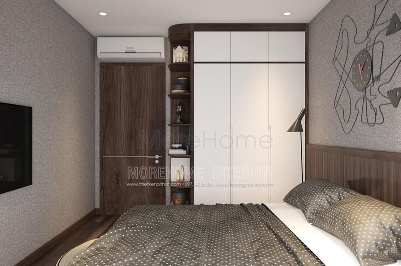 Gợi ý mẫu cửa gỗ 1 cánh ngăn cách giữa phòng ngủ và phòng ăn mang đến sự riêng tư cho căn hộ chung cư hiện đại