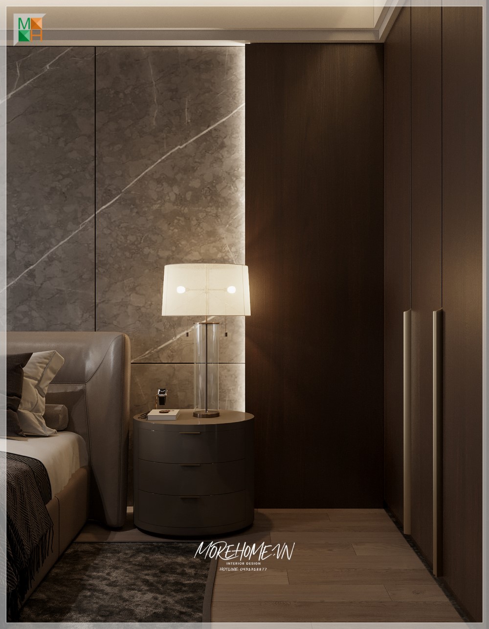 Trang trí nội thất phòng ngủ Master chung cư ấn tượng với gỗ tự nhiên nhập khẩu cao cấp