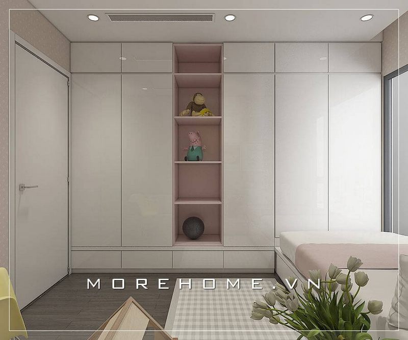 Mẫu thiết kế tủ quần áo hiện đại kịch trần âm tường tại phòng ngủ bé gái