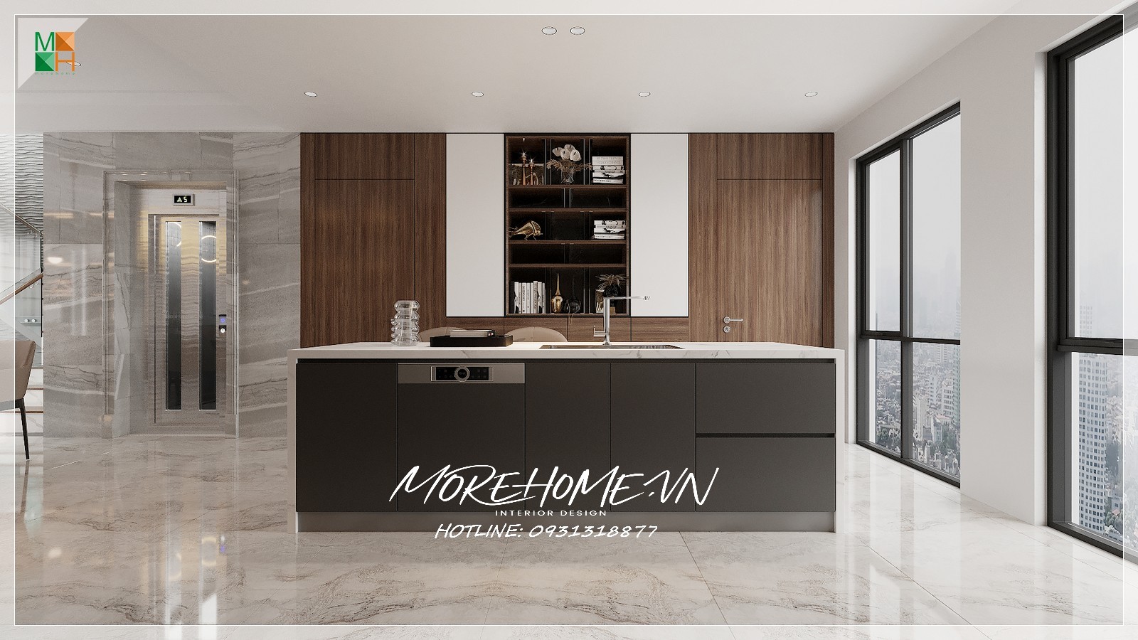 Thiết kế nội thất phòng bếp chung cư phong cách hiện đại, đơn giản và tiện nghi cho người nội trợ