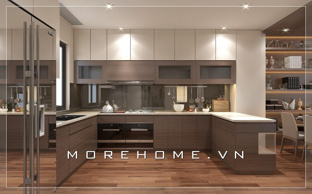 Thiết kế nội thất phòng bếp gỗ công nghiệp hiện đại, tiện nghi