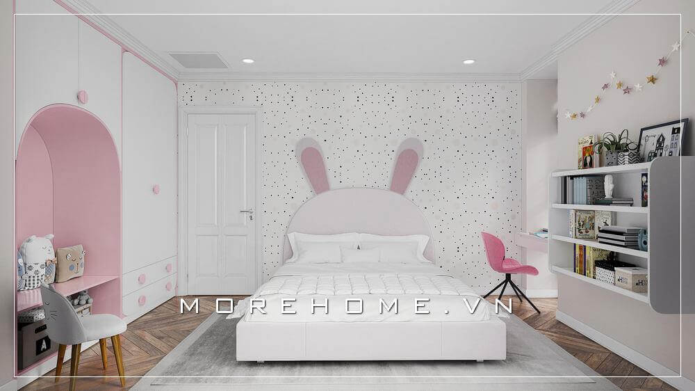 Mẫu tủ quần áo kết hợp kệ trang trí được thiết kế âm tường độc đáo và tiết kiệm không gian tạo diện tích vui chơi cho bé
