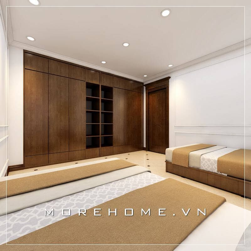 Thiết kế tủ áo gỗ công nghiệp âm tường là một trong những lựa chọn hoàn hảo của gia chủ trong công trình này