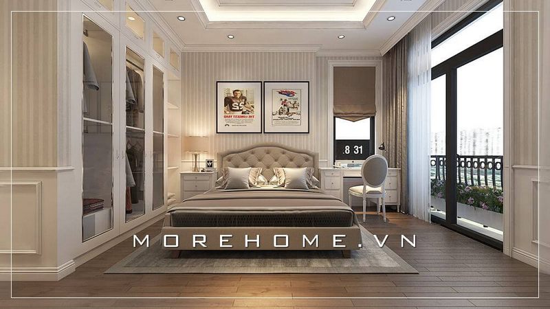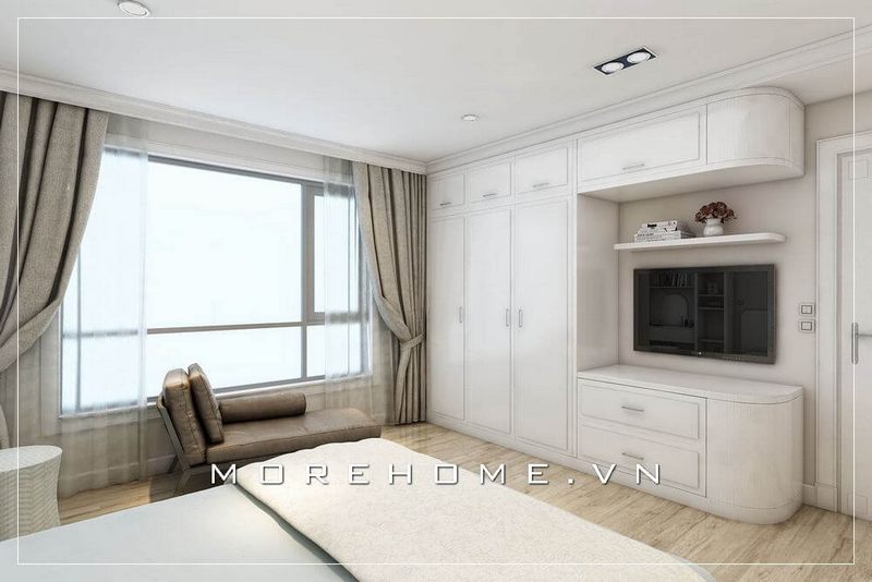 Mẫu tủ quần áo phòng ngủ hiện đại thiết kế âm tường kịch trần sang trọng màu trắng sang trọng tăng sự tiện nghi cho căn phòng ngủ chung cư, nhà phố, biệt thự